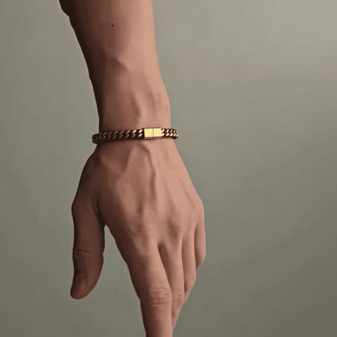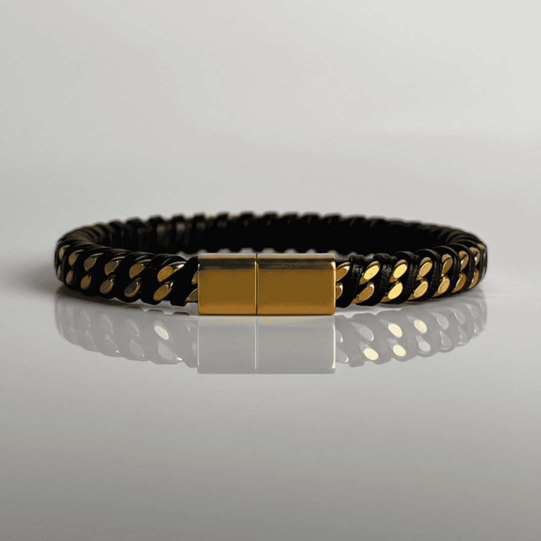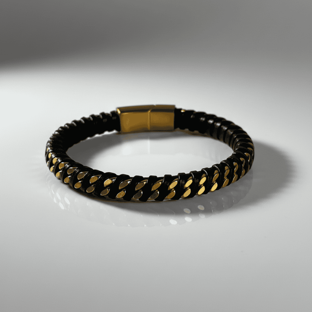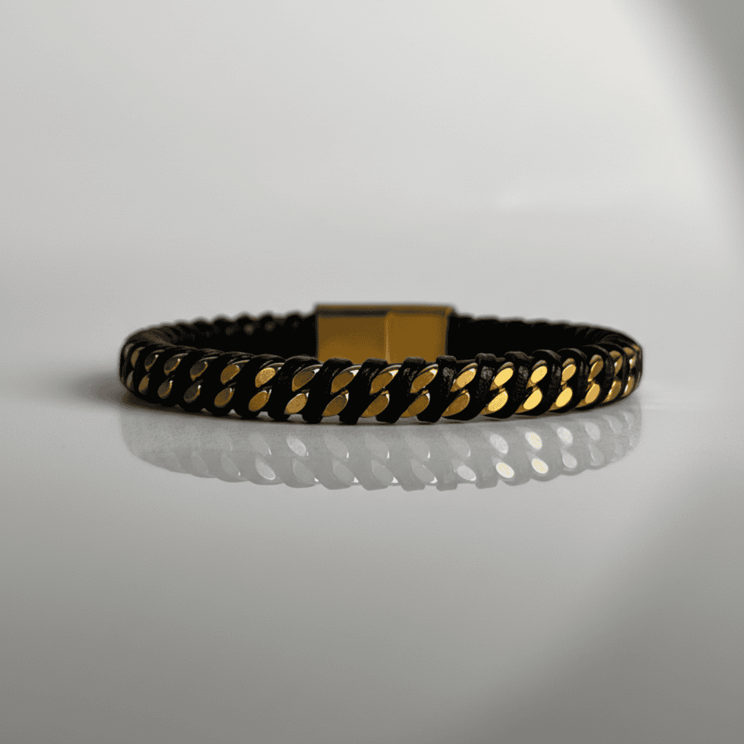 The Eclipse bracelet blends deep black tones with radiant gold highlights — a perfect balance of strength and shine. Designed for men who carry confidence with subtle elegance.