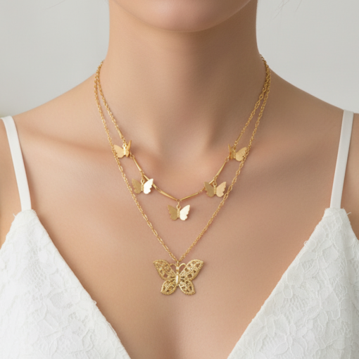 EDITH –Two-layer butterfly necklace Alloy Gold Polish