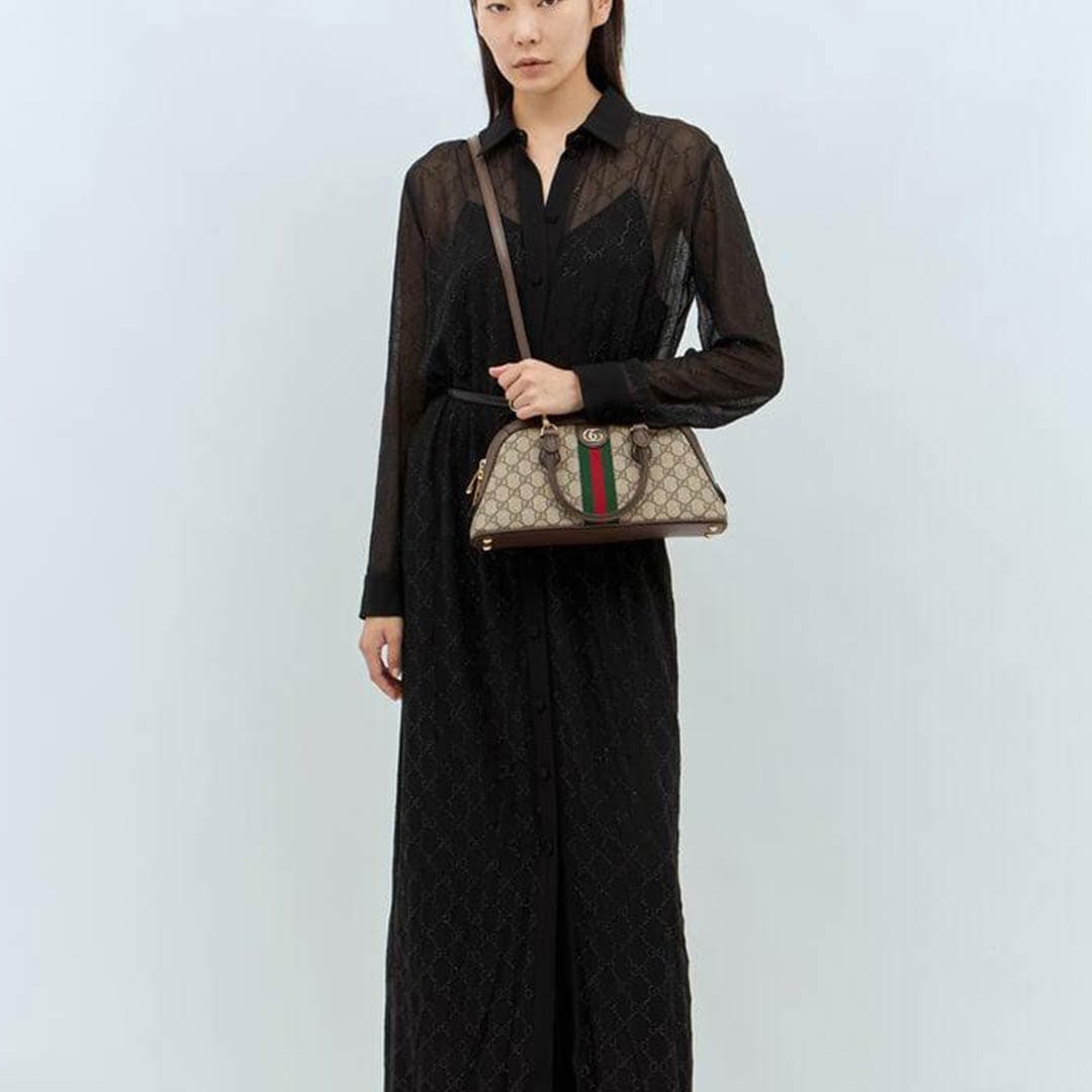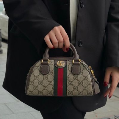 Elevate your style with this elegant small shoulder bag, crafted from premium monogram canvas and finished with rich brown leather accents. Its structured shape and timeless striped web detail add a touch of sophistication to any outfit. Featuring dual top handles, a secure zip closure, and a soft-lined interior, this piece perfectly balances fashion and functionality.