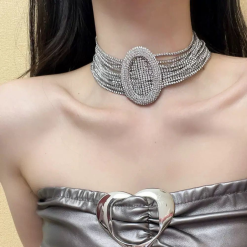 Illuminate every moment with Luminare, a statement neckpiece designed to captivate from every angle. Crafted with rows of sparkling stones and a bold, oval centerpiece, this choker reflects light beautifully—giving you a radiant, high-glamour glow wherever you go.