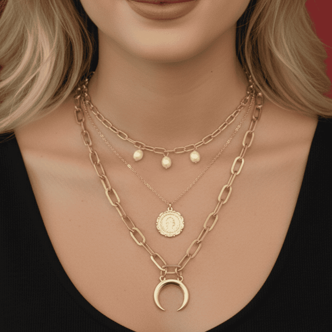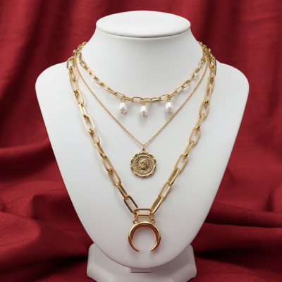 Add grace to your subtle presence with PHOEBE, our 3-layer necklace set. It is an elegant accessory with a detailed design adorned with small charms to precisely showcase your neckline.