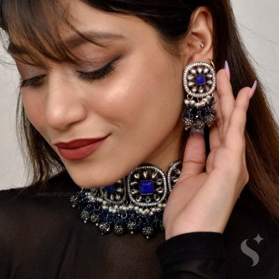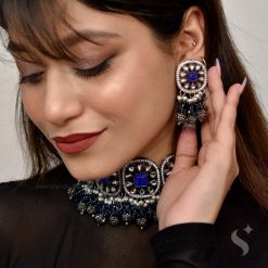 MASTANI, available in blue and pastel grey tones, is a perfect choker to be worn with matching and contrasting colored attires. Wear it to spruce up your overall look and be the enchantress. You can even wear it with black indo-western outfits for an edgy look.