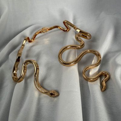 Inspired by the mythical aura of Medusa, it channels her fierce beauty and untamed strength—turning every gaze into one of admiration. Its sculptural design drapes effortlessly around the neckline, making it the ultimate chic accessory for evening wear, high-fashion looks, or daring everyday style.