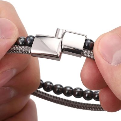 Elevate your style with the Sacred Silver Aura Bracelet, a perfect fusion of strength and sophistication. Crafted with premium metallic beads and a refined silver braided band, this bracelet embodies balance, clarity, and confidence. The sleek magnetic clasp ensures a secure and comfortable fit, making it ideal for both casual and formal wear.