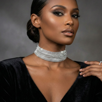 Style: Wide, statement choker (or collar) necklace.