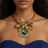 For a maximalist approach, wear all three bangles on one wrist. Keep the rest of your outfit simple, such as a black silk slip dress, to allow the rich gold tones to be the focal point.