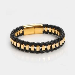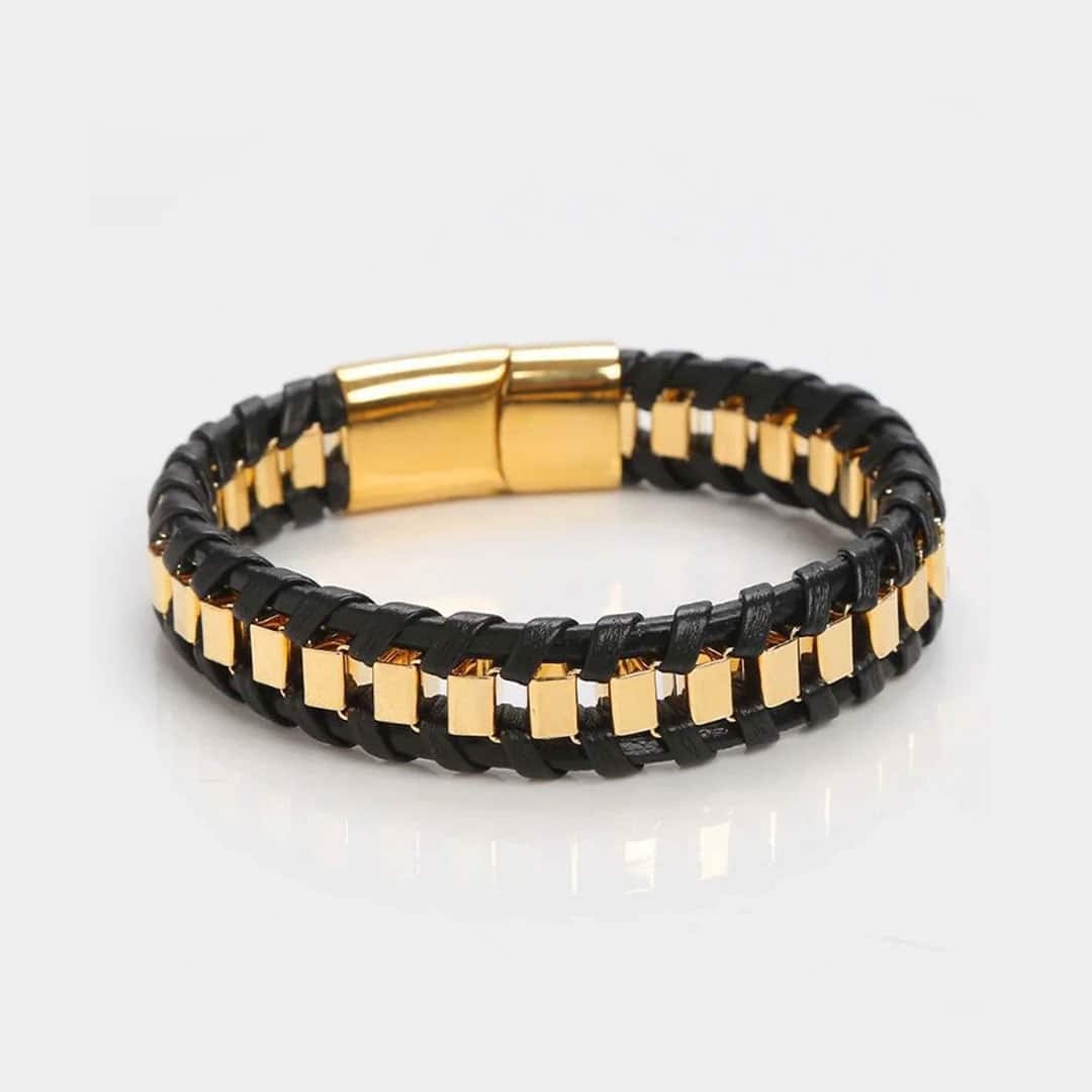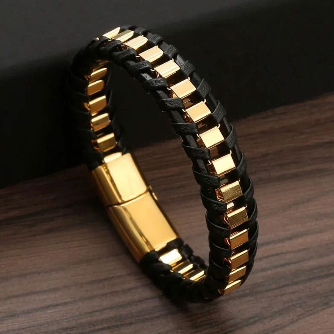 Golden Hour Black Bracelet — a perfect blend of elegance and strength. Crafted with premium black leather and golden accents.