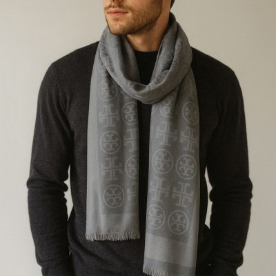 Elevate your winter look with this luxurious designer scarf crafted from soft, semi-wool fabric. Its smooth texture and elegant pattern add a refined charm to any outfit — whether draped over a coat or styled casually.